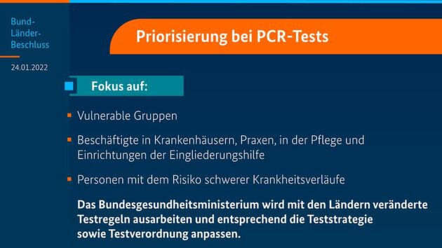 | Der Engpass bei den Labor- und Testkapazitäten wurde in der Ministerpräsidentenkonferenz (MPK) vom 24.01.2022 harsch kritisiert. Darüber hinaus wurde Gesundheitsminister Karl Lauterbach (SPD) gerügt, weil das Robert-Koch-Institut (RKI) ohne vorherige Ankündigung den Genesungsstatus von 6 Monaten auf 62 Tage begrenzt hat. Mehrere Ministerpräsidenten drängen zudem auf eine Beibehaltung der Wirtschaftshilfen und des pandemiebedingten Kurzarbeitergeldes über den März hinaus. Ansonsten ist vorerst nicht mit Öffnungen zu rechnen. Nur für Großveranstaltungen sollen bundeseinheitliche Regelungen bis 09.02.2022 beschlossen werden. |
