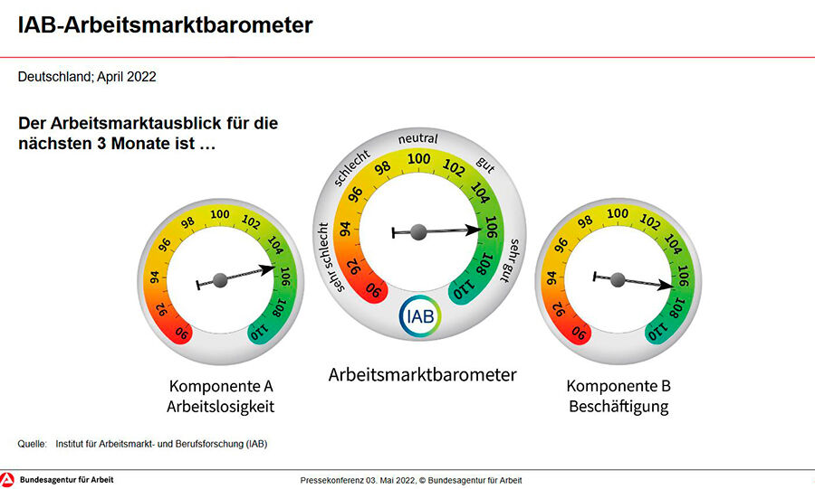 „Der Arbeitsmarkt erholt sich weiter. Durch die Lockerungen und die beginnende Frühjahrsbelebung sinkt die Arbeitslosigkeit und steigt die Beschäftigung. Folgen des Krieges in der Ukraine zeigen sich in den ...